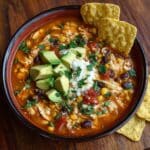 This hearty and flavorful 8 Can Chicken Taco Soup is a delicious and easy-to-make dish perfect for a quick weeknight dinner. Combining canned ingredients like diced tomatoes, corn, black beans, pinto beans, cream of chicken soup, chicken breast, green enchilada sauce, and chicken broth, this soup bursts with classic Mexican-inspired flavors. Topped with olives, avocado, sour cream, tortilla strips, and lime wedges, it’s a comforting and satisfying meal ready in just under 30 minutes.