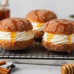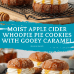 Delight in the warm, cozy flavors of Apple Cider Whoopie Pie Cookies with a rich homemade caramel filling. These soft, spiced cookies are infused with apple cider and perfectly complemented by a luscious caramel sandwich, making them an irresistible treat for fall or any time you crave a comforting dessert.