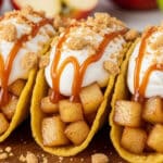 Keywords: apple pie tacos, dessert tacos, baked tortilla dessert, apple pie filling, cinnamon dessert, easy fall dessert