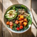 These Avocado Mojo Bowls with Sweet Potato are a vibrant, comforting meal centered on tender roasted sweet potato wedges and caramelized red onions, paired with a creamy, zesty avocado mojo sauce. Enhanced with your choice of protein like chicken meatballs or rotisserie chicken, this dish combines bold flavors and satisfying textures for an easy, wholesome dinner that’s both colorful and delicious.