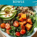 Keywords: Avocado Mojo Bowls, Sweet Potato Recipe, Roasted Sweet Potatoes, Avocado Sauce, Easy Dinner Bowl, Chicken Meatballs, Healthy Bowls, Gluten-Free Dinner