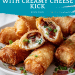 Crispy, golden egg rolls filled with creamy, cheesy, bacon-loaded jalapeno popper goodness! A spicy and savory appetizer that’s sure to be a crowd-pleaser, combining the heat of jalapenos with rich cream cheese, sharp cheddar, and smoky bacon all wrapped in a crunchy egg roll wrapper.