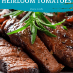 This Balsamic-Glazed Steak with Heirloom Tomatoes recipe features juicy ribeye or sirloin steaks seared to perfection and glazed with a rich, tangy balsamic and honey mixture. Served alongside vibrant, seasoned heirloom tomatoes and garnished with fresh basil, this dish combines bold flavors with simple, elegant preparation for a delightful meal.