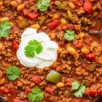 Keywords: ground beef chili, stovetop chili, easy chili recipe, beef chili, kidney beans chili, black beans chili, chili powder, hearty chili