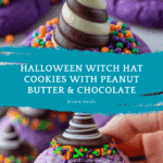 These Best Witch Hat Halloween Cookies bring festive fun to your holiday baking. Soft, peanut buttery purple cookies topped with a chocolate kiss and sprinkles create the perfect spooky treat for any Halloween celebration.