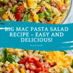 A delicious and easy-to-make Big Mac Pasta Salad that combines the flavors of a classic Big Mac burger with a creamy, tangy pasta salad. Featuring rotini pasta, seasoned ground beef, pickles, lettuce, tomato, onion, cheddar cheese, and a signature dressing made with mayonnaise, ketchup, mustard, and pickle juice, this dish is perfect for potlucks, picnics, or casual family dinners.