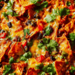 This Black Bean Sweet Potato Taco Skillet is a flavorful and hearty one-pan meal featuring tender sweet potatoes, black beans, and diced tomatoes, seasoned with chili powder, garlic, and cumin. Topped with crispy tortilla chips and melted Mexican cheese blend under the broiler, it’s a vibrant and satisfying dish perfect for a quick weeknight dinner. Garnished with fresh cilantro and served with sour cream, it brings together Tex-Mex flavors in a comforting skillet dinner.
