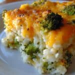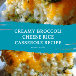 Keywords: broccoli casserole, cheese rice casserole, comfort food, baked casserole, easy side dish, vegetarian casserole