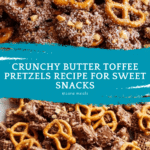 Keywords: Butter Toffee Pretzels, toffee pretzels, homemade snack, caramel pretzels, buttery toffee, Heath bits pretzels, crunchy snacks, party snacks