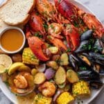 Keywords: Cajun seafood boil, seafood boil recipe, crab boil, garlic butter sauce, Cajun shrimp boil, seafood dinner