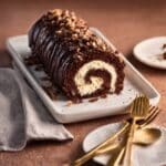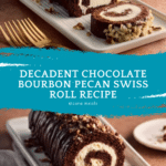 This Chocolate Bourbon Pecan Swiss Roll is a decadent dessert combining rich cocoa sponge, creamy bourbon-infused filling, and luscious chocolate ganache. Perfect for special occasions or a luxurious treat, its layers deliver a harmonious blend of flavors and textures.