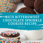 Keywords: chocolate sprinkle cookies, chocolate cookies, festive cookies, holiday cookies, chocolate chip cookies, cocoa cookies