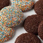 These Chocolate Sprinkle Cookies are a delightful treat featuring rich bittersweet chocolate and a festive coating of red, white, and green sprinkles. Soft, chocolatey, and chewy, they bring both flavor and fun to any occasion, especially around the holidays.