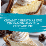 This Christmas Eve Cinnamon-Vanilla Custard Pie is a creamy and comforting holiday dessert that blends warm spices with rich vanilla flavors. Its smooth custard filling nestled in a flaky pie crust makes it a perfect festive treat to share with family and friends.