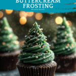 9. Decorate: Divide the green buttercream between two piping bags fitted with star nozzles. Pipe the buttercream over the trees in your desired pattern, keeping the trunks plain. Decorate with sprinkles or sweets to resemble ornaments and tree toppers.