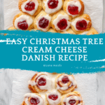 This Christmas Tree Cream Cheese Danish is an easy and festive last-minute breakfast treat. Using refrigerated crescent rolls filled with creamy sweetened cream cheese and cherry pie filling, this pastry is shaped into a charming Christmas tree and topped with a light powdered sugar glaze. Perfect for holiday mornings or gatherings, it’s quick to assemble and bake, delivering a delightful combination of flaky pastry and luscious filling.