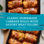 Classic cabbage rolls stuffed with a savory mixture of ground Italian sausage, beef, rice, and aromatic seasonings, baked in a rich tomato sauce until tender and flavorful. A comforting and hearty meal perfect for family dinners.