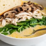 This comforting rotisserie chicken and mushroom soup is a warm and hearty dish perfect for cozy evenings. Packed with tender chicken, earthy mushrooms, and fresh spinach, it’s both flavorful and easy to make. A splash of cream adds richness, making it a satisfying meal any time of year.