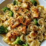 This Cowboy Butter Lemon Bowtie Chicken with Broccoli is a flavorful and satisfying one-pan meal. Tender pieces of Cajun-seasoned chicken and crisp broccoli combine with bowtie pasta in a rich, buttery lemon sauce, finished with fresh herbs and Parmesan cheese. Perfect for a quick weeknight dinner that feels special.