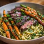 Cowboy Butter Steak Linguine with Roasted Carrots & Parsley is a hearty and flavorful pasta dish combining tender seared steak, sweet roasted carrots, and linguine tossed in a rich, garlicky butter sauce with a hint of lemon and spice. This quick and satisfying meal is perfect for weeknight dinners or casual gatherings, delivering a comforting blend of savory and fresh flavors.