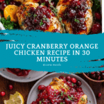 This Cranberry Orange Chicken recipe features tender boneless chicken breasts or thighs cooked in a vibrant, tangy sauce made from fresh cranberries, orange juice, and zest, sweetened with honey or maple syrup. The chicken is first browned to a golden finish on the stovetop and then simmered in a flavorful homemade cranberry-orange sauce that perfectly balances sweet, tart, and savory notes. This dish is both refreshing and comforting, ideal for a flavorful weeknight dinner or a special occasion meal.
