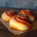 - Step 8: Take the first dough roll and stretch it to over a meter in length. Coil it into a spiral, leaving about 1 cm gap between each turn to allow for expansion. Flatten slightly and transfer to a baking sheet lined with parchment. Repeat with remaining rolls.