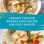 Keywords: Creamy Chicken Noodle Soup, chicken soup, creamy soup, comfort food, easy dinner, homemade soup, chicken broth soup, wide egg noodles, one pot soup
