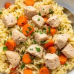 Keywords: chicken pot pie, creamy chicken orzo, comforting meal, one pan dinner, easy chicken recipe