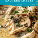 This creamy chicken soup is a rich and hearty comfort dish featuring a smooth roux base, tender vegetables, aromatic herbs, and shredded chicken. Perfectly thickened and garnished with Gruyere cheese and fresh parsley, this soup is ideal for cozy family meals or entertaining guests.