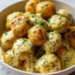 These creamy garlic sauce baby potatoes are a comforting and flavorful side dish perfect for any meal. Tender baby potatoes are coated in a rich, garlicky cream sauce and finished with Parmesan and fresh parsley for a delightful finish.