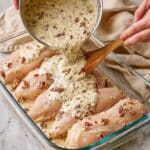 - Step 4: Pour the creamy sauce evenly over the chicken breasts, ensuring each piece is generously covered.