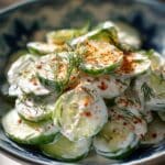 This Cucumber Caesar Salad offers a refreshing and light twist on the classic Caesar, combining crisp, thinly sliced English cucumber with a creamy, tangy Caesar dressing made from mayonnaise, Parmesan, lemon juice, and Dijon mustard. It’s perfect as a quick appetizer or a side dish, and can be enhanced with grilled chicken or shrimp for added protein.