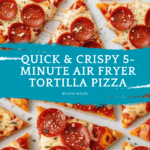 This Easy 5 Minute Air Fryer Tortilla Pizza recipe is a quick and delicious way to enjoy a crispy homemade pizza using tortillas as the base. With simple ingredients like pizza sauce, mozzarella, pepperoni, and a hint of Italian seasoning, this recipe delivers a flavorful meal or snack cooked perfectly in the air fryer for a golden, melty finish in just minutes.