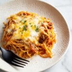 - Optional Broil and Rest: For a golden-brown cheese crust, switch your oven to broil and cook the top for a few minutes while watching carefully to prevent burning. Remove from the oven and let the baked spaghetti rest for 5 to 10 minutes to set.