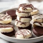 - Decorate the Rounds: Spoon the melted chocolate into a piping bag fitted with a small plain nozzle. Pipe the chocolate in a zig-zag pattern over each dried peppermint cream round, ensuring even coverage and an attractive decorative finish.