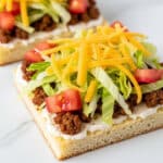 5. Serve: Cut the assembled taco pizza into equal squares and serve immediately. Enjoy fresh for best flavor; leftovers can be refrigerated for 1-2 days.