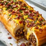 Garbage Bread is a hearty, cheesy, and flavorful stuffed bread that’s perfect for casual dinners or game day snacks. Filled with seasoned ground beef, vegetables, and melted mozzarella, it’s a satisfying meal wrapped in golden, buttery dough.