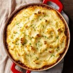- Assemble Pie: Transfer the filling to a shallow casserole dish or leave in the braiser. Evenly spoon the mashed root vegetable topping over the filling.