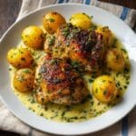 This Garlic Parmesan Chicken and Potatoes recipe delivers a flavorful, one-pan meal featuring tender, seasoned chicken and crispy baby potatoes, all finished with a rich garlic butter and freshly grated Parmesan cheese. Perfectly baked to golden perfection, it’s an easy dinner option that combines savory herbs and spices with a cheesy, garlicky finish.
