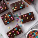 Keywords: brownies, fudgy brownies, chocolate ganache, rainbow chip brownies, dessert, chocolate dessert, homemade brownies