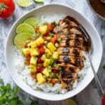 Grilled Pineapple Chicken with Cilantro Lime Rice and Salsa Recipe
