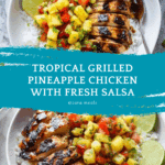 Keywords: Grilled Chicken, Pineapple Chicken, Tropical Chicken, Chicken and Rice, Grilled Pineapple Salsa, Summer Meal, Healthy Dinner
