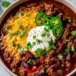 This Ground Beef Stovetop Chili recipe is a hearty, flavorful dish perfect for a quick and satisfying dinner. Made with tender ground beef, a blend of vibrant bell peppers, beans, and a rich tomato base seasoned with chili powder and smoked paprika, this chili simmers to perfection on the stovetop. It’s easy to customize with your favorite toppings like shredded cheddar, sour cream, or avocado slices, making it a delicious all-around comfort meal.