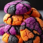 These Halloween Crinkle Cookies are delightfully soft and fudgy with a festive crackled appearance. Perfect for spooky celebrations, they come in vibrant orange, purple, or black colors that brighten up any dessert table.