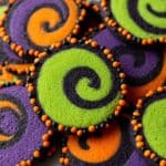 Keywords: Halloween cookies, sugar cookies, pinwheel cookies, colorful cookies, festive desserts, fall baking, holiday treats