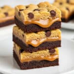 These Knock You Naked Bars are a decadent layered dessert combining a buttery chocolate chip and pecan cookie base with a rich, creamy caramel layer in the middle. They yield a perfect balance of sweet, nutty, and gooey textures that are irresistibly delicious and easy to make for any occasion.