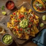 Store leftover components separately in airtight containers in the refrigerator for up to 2 days. The tortilla chips will lose their crispness if stored mixed with wet ingredients. Reheat the chips and toppings separately in the oven to maintain their texture. Guacamole is best eaten fresh but can be refrigerated with a layer of cling film pressed directly onto the surface to minimize browning.