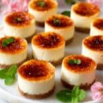 Keywords: mini cheesecake, crème brûlée cheesecake, graham cracker crust, caramelized sugar topping, creamy dessert, bite-sized cheesecake
