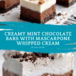 Keywords: Mint chocolate bars, mascarpone whipped cream, no-bake dessert, chocolate cookie crust, peppermint dessert