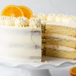 Keywords: orange cake, layer cake, orange gelatin cake, moist cake, citrus cake, buttercream frosting, homemade cake
